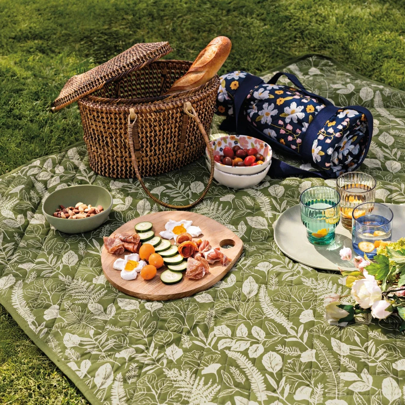 Regular price $58.99 Save $-58.99Crafted from our 100% recycled Clean Coast material—comprised of ocean-bound plastic repurposed into fabric—this roll-up picnic blanket with twill strap, seats two comfortably. Its beautiful design pairs effortlessly with our melamine and acrylic outdoor collections, so you can picnic in style. A lush ode to nature, Fern & Frond features layered leafy botanicals in earthy green and soft cream. Enduringly fresh, this collection joins organic elegance with modern color blocking for year-round beauty.