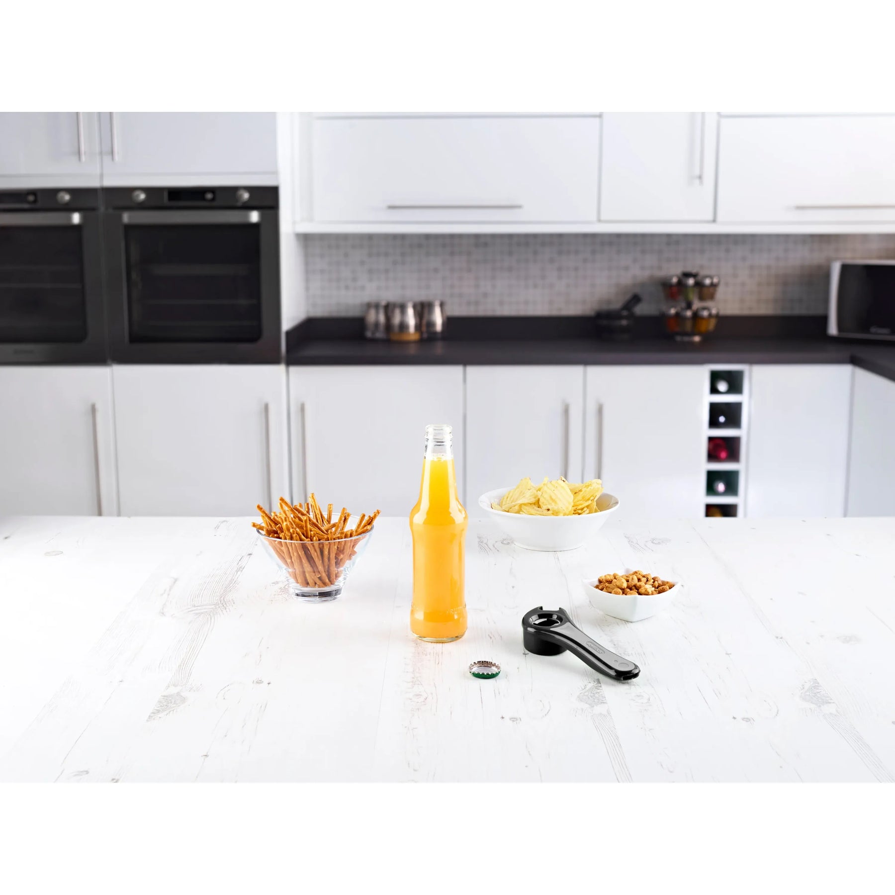 Bottle Openers — A standout collection of bottle openers: The Deluxe Wall-Mount Bottle Opener for a classic bar-mount opener. The Fackelmann 4-in-1 Bottle Opener for a multi-function opener. The Kuchenprofi Universal Opener BUTLER 5 in 1 for five tools in one. The Jokari's Universal Easy Open Bottle for an ergonomic all-purpose opener. Novelty openers: The Beetles Bottle Opener, 8 Ball Bottle Opener, Butter Bottle Opener, Blues Guitar Bottle Opener, Smiley Pool Ball Bottle Opener — bottle openers as gifts and conversation starters.