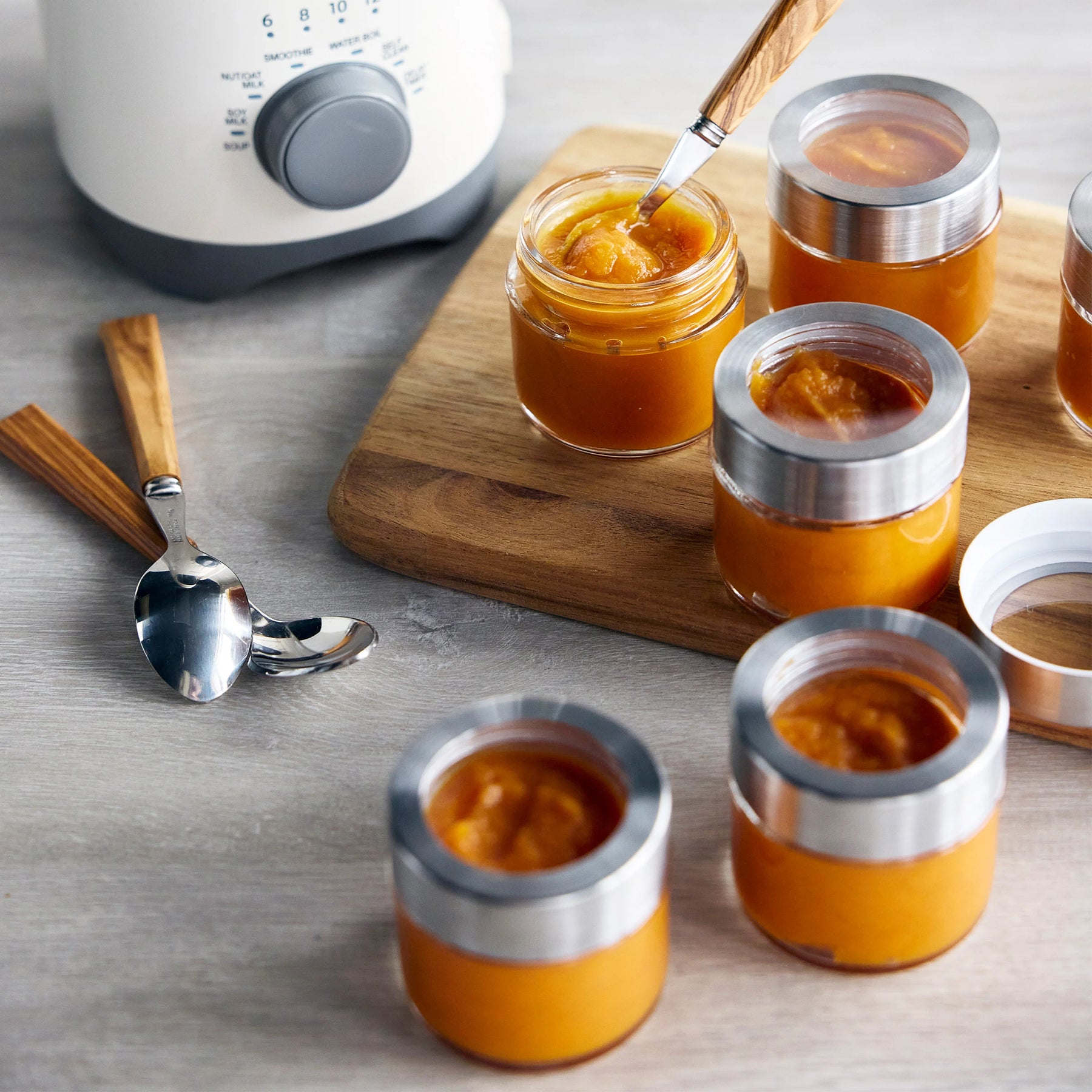 With our Immersion Blender, you can blend in any container with a 3-inch wide (or larger) opening, including a smoothie cup or a 1-quart wide-mouth Mason jar.