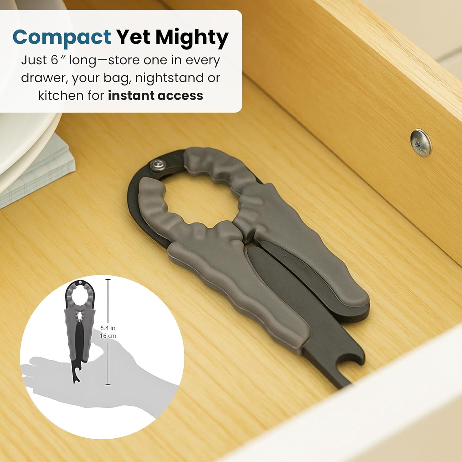 Regular price $8.99 Save $-8.99PERFECT FOR WEAK OR ARTHRITIC HANDS. Gripping and twisting tight lids can be painful. Use this 4 in 1 tool to quickly and painlessly pry open even the most stubborn container tops, lids, and caps.