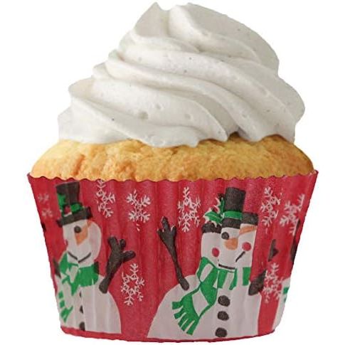 Cupcake Liner, Snowman & Flakes on Red