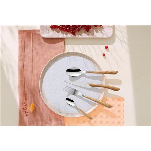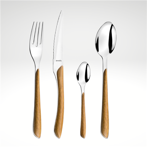 Regular price $5.99 Save $-5.99Eclat Nature: Flatware Set in Brown. Crafted with meticulous attention to detail, this set boasts plastic handles adorned with a striking wood pattern, infusing each piece with character and a natural allure. The warm ambiance is further accentuated by the high gloss stainless steel, delivering a polished and sophisticated touch to every table setting.