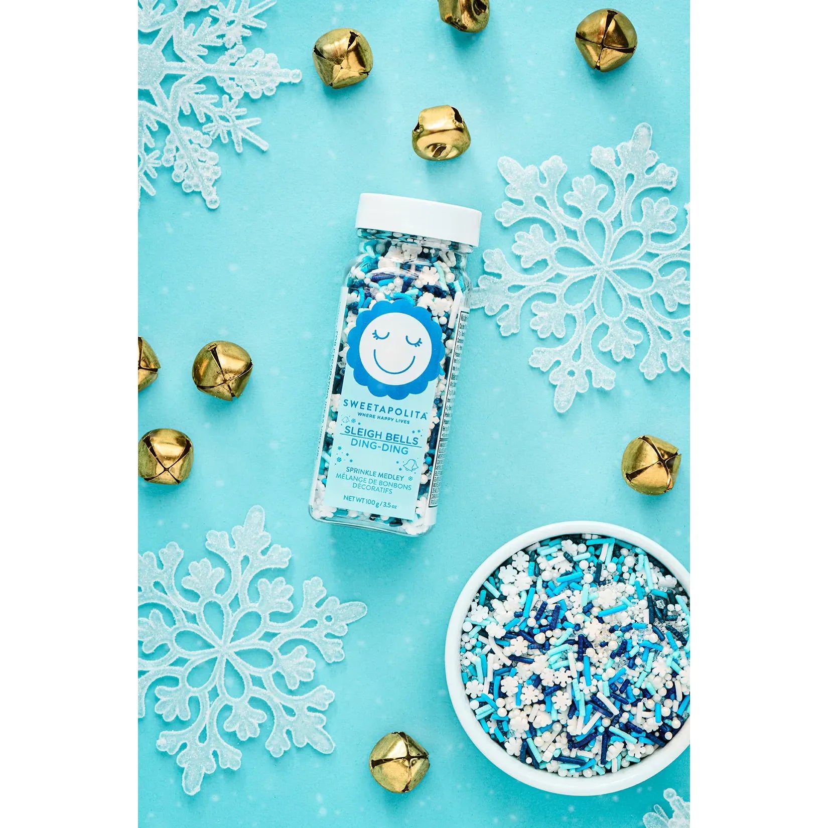 Regular price $11.99 Save $-11.99Add a classic wintery touch to your treats with our Sleigh Bells Sprinkle Medley, a playful mix of blue shades, sweet + crunchy sprinkles, sugar and confetti. These sprinkles delight without any hard pieces, making them ideal for decorating treats of every kind, or even hot cocoa. Made in Canada.