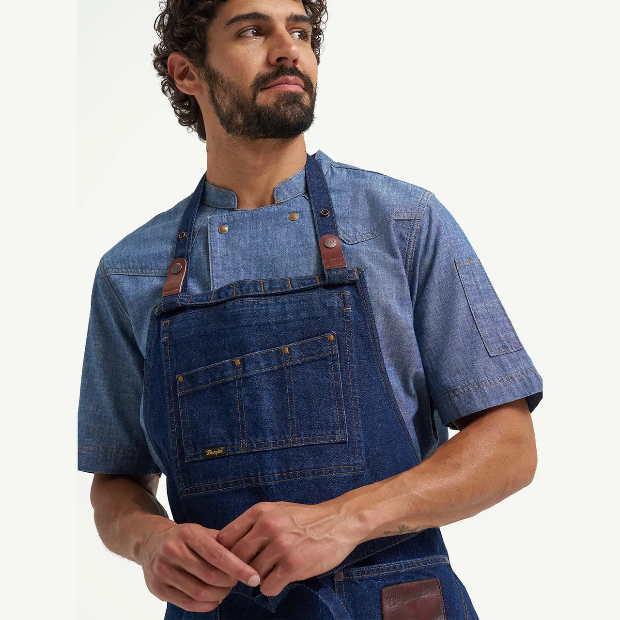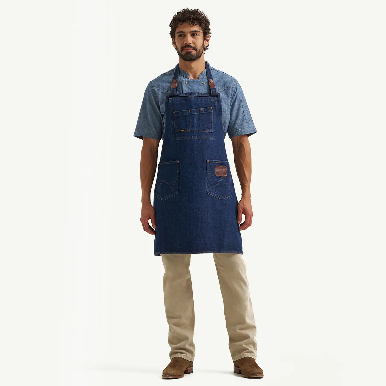 Designed with the needs of working chefs in mind, it features two lower patch pockets, a chest panel with utensil slots, and signature Wrangler ‘W’ stitching. Whether you’re cooking in the wild or holding down the line, this apron gives you utility, structure, and style—right where you need it.