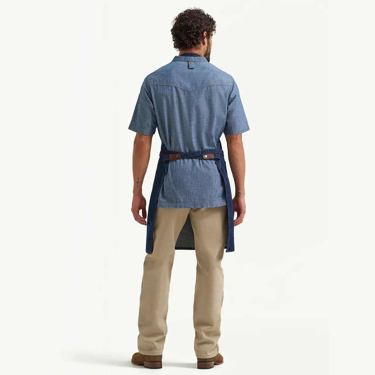 A rugged denim apron built with Western durability and chef-driven detail—made to meet you where the heat is.