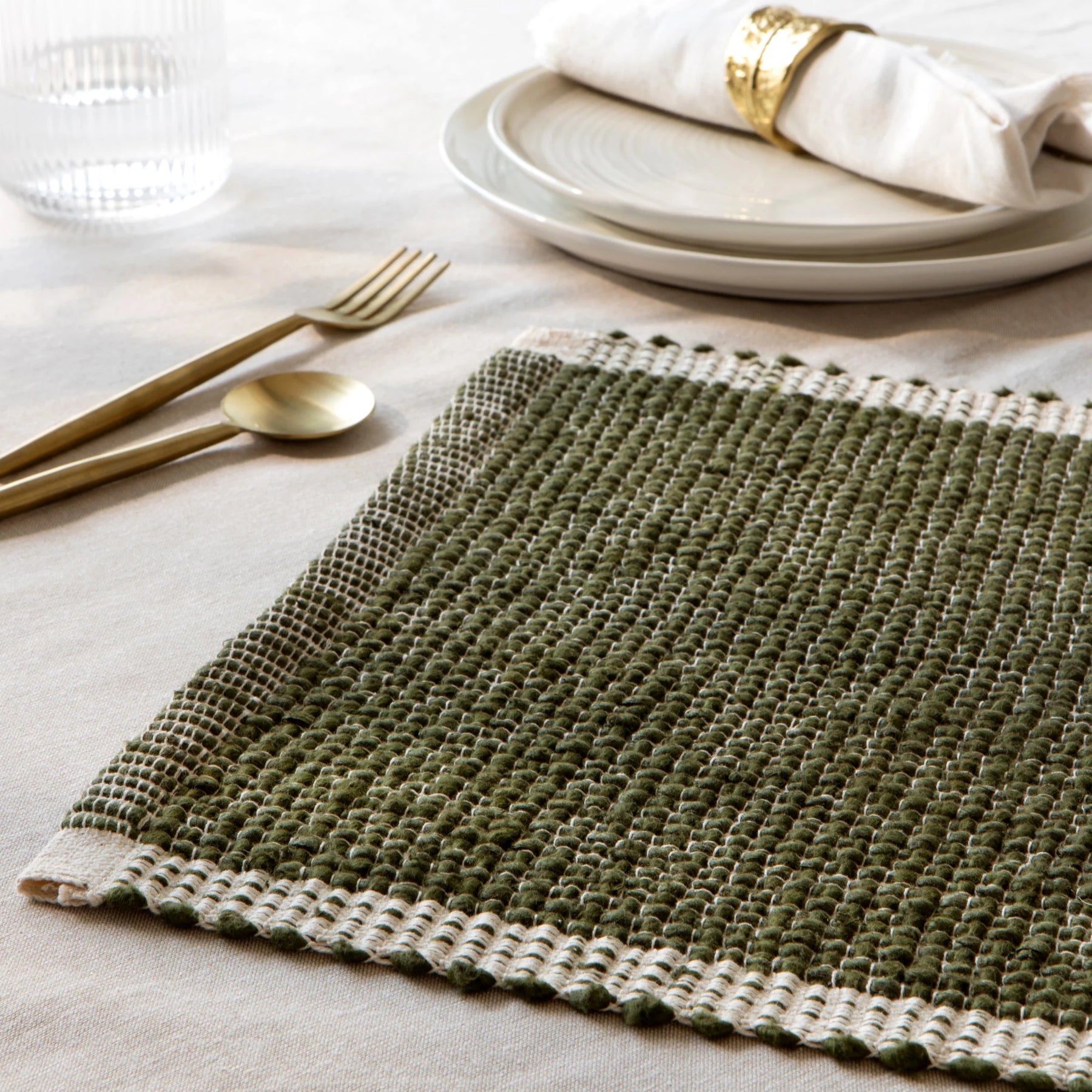 Linen & Textile — The Haomy Linen Placemat for a natural linen placemat with clean edges. The Samsara Placematfor a woven textile placemat with subtle pattern. The Lattice Placemat for a lattice-weave table mat. The Spectrum Placemat for a colorful everyday placemat.