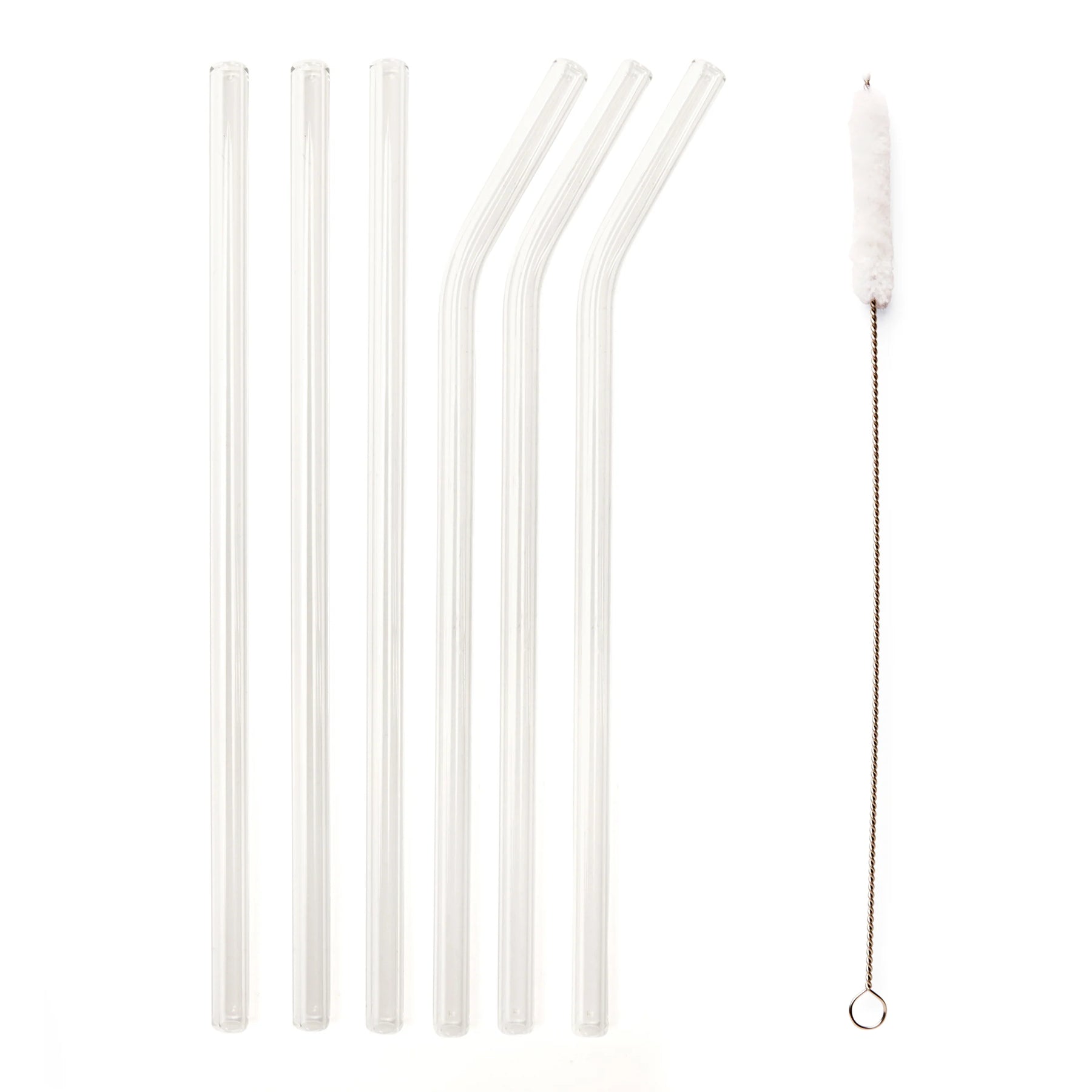 Regular price $7.99 Save $-7.99This reusable set of glass straws includes 3 curved and 3 straight straws with a cotton cleaning brush.