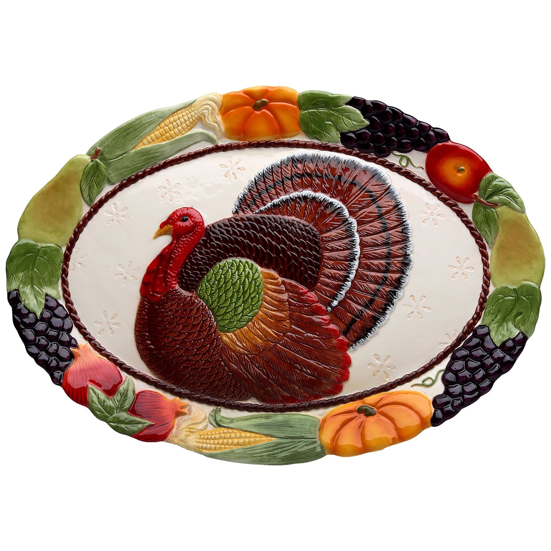 Hand Painted Ceramic Thanksgiving Turkey Platter