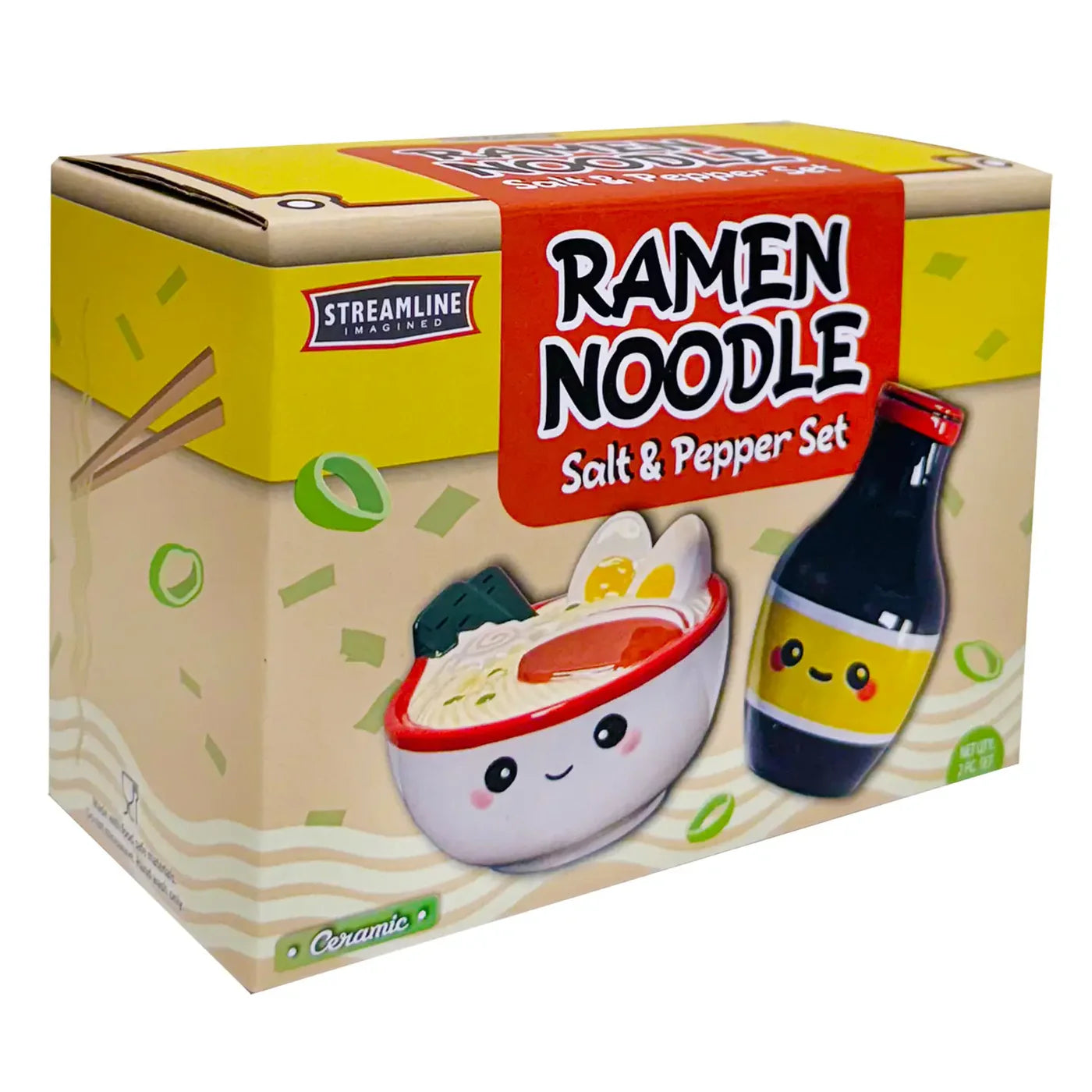 Season your dishes with a slurp of fun using this ramen noodle bowl and soy sauce-shaped salt and pepper set—it’s a tasty twist that’s sure to make your meals souper! Material: Ceramic Packaging: Color Box, Dimensions4.8 x 2.8 x 3.4 in (12.1 x 7.1 x 8.6 cm)