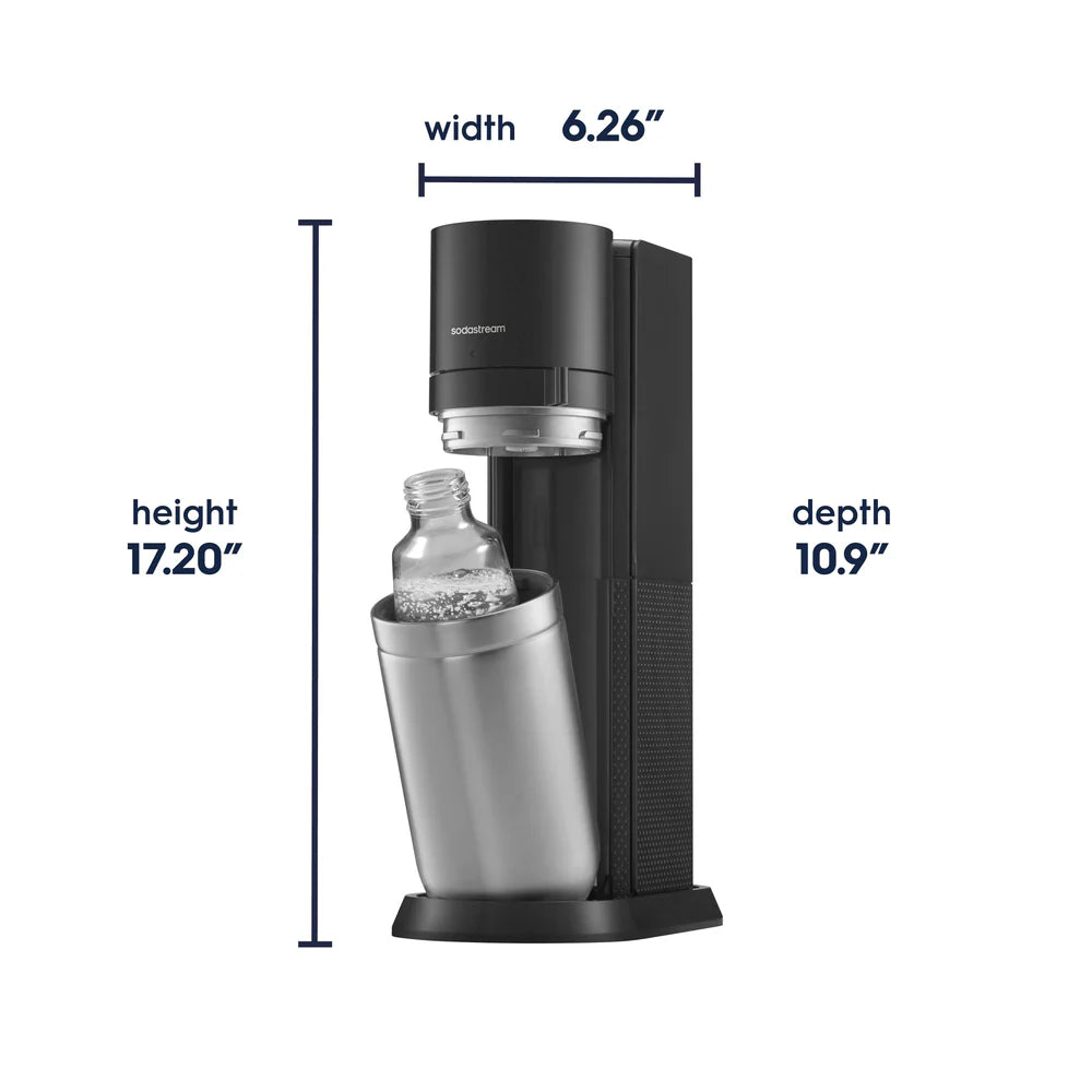 Regular price $179.95 Save $-179.95Combining all the best elements of previous models, the E-Duo from SodaStream takes water carbonation to the next level. The innovative machine boasts a bevy of upgraded features, including one-touch electrical technology and three preset levels of fizz. The dual carbonation system works with both glass and plastic bottles (one of each is included) for the ultimate in versatility and convenience. The E-Duo is also equipped with the company's patented Quick Connect system for fast, easy cylinder swapping – no twisting required.