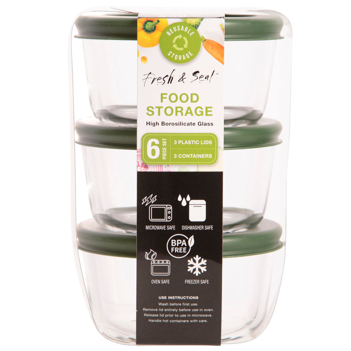 Regular price $11.99 Save $-11.99The Fresh & Seal food storage container its fully tempered glass body provides durability and clarity. The BPA-free green plastic lid offers a secure seal to help preserve freshness, and both pieces are dishwasher safe for convenient cleaning.