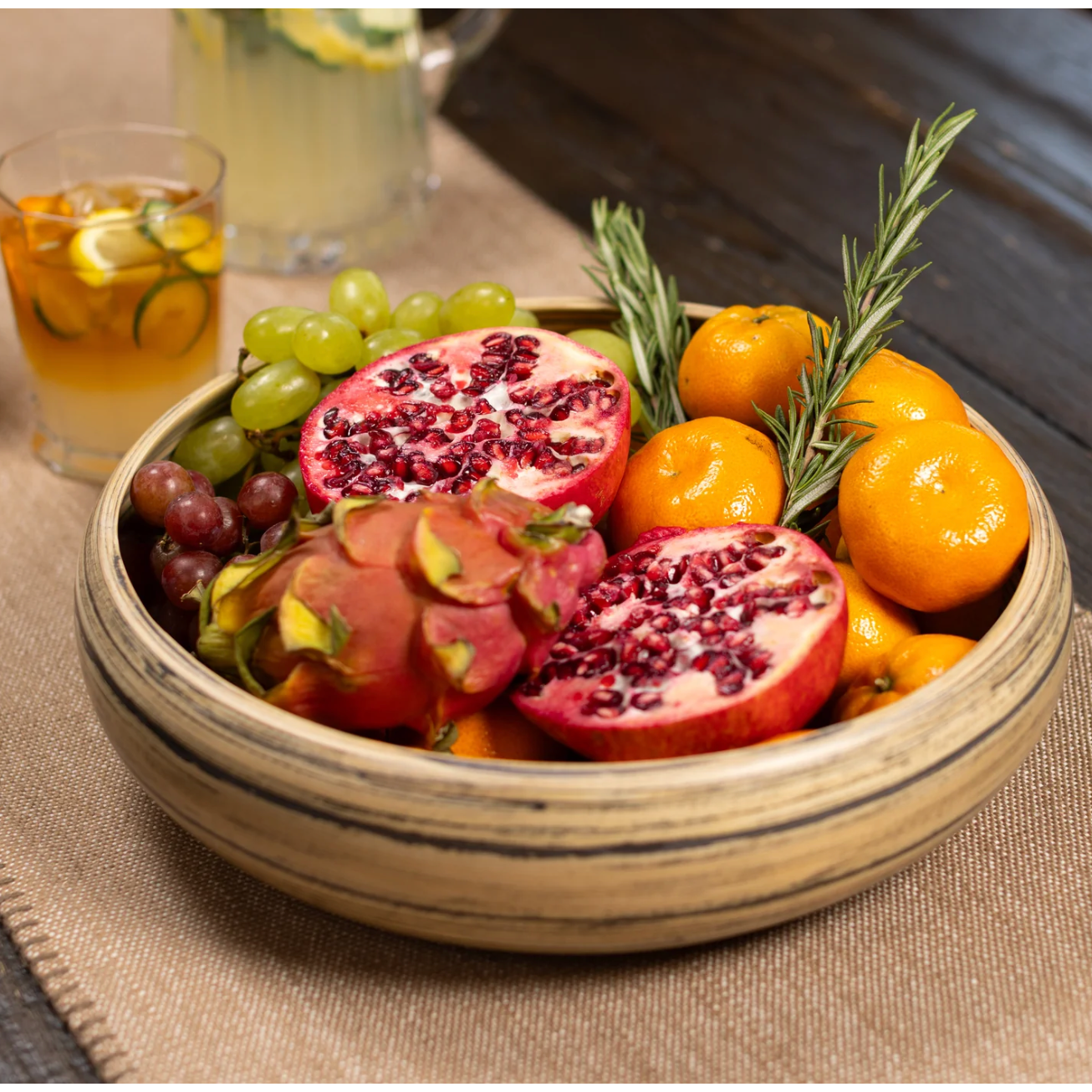 Regular price $29.99 Save $-24.99Incredibly versatile and beautifully crafted, the Lexa 12” Fruit Bowl is designed to be both functional and decorative. Whether you're serving fruits, snacks, desserts, or salads, it’s the perfect addition to dinner parties, brunches, or casual family meals. Its generous size easily holds enough for the whole family, while the sleek, natural finish makes it a stunning centerpiece for your dining table or kitchen counter. From everyday use to special occasions, this bowl adds a touch of style and warmth to any space.