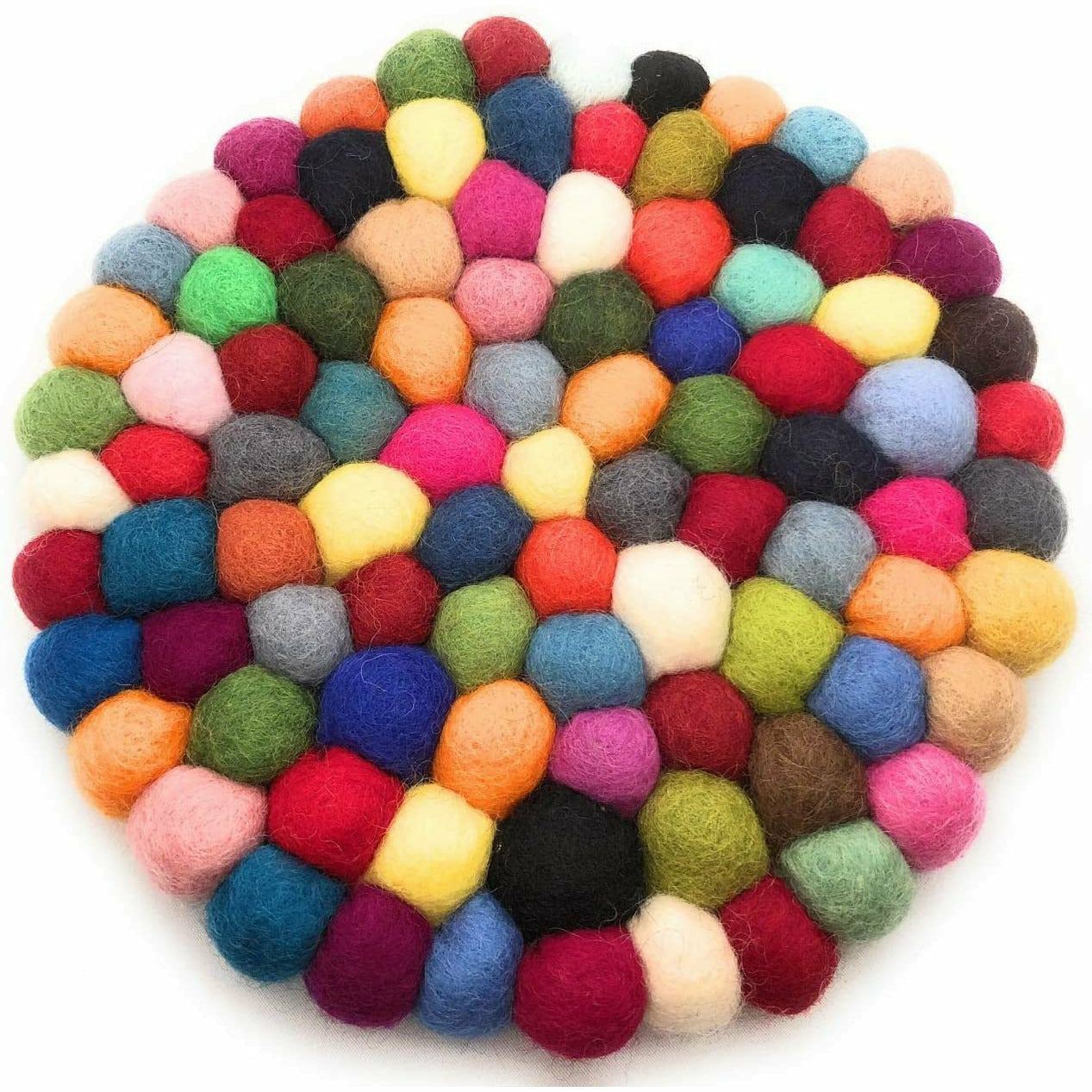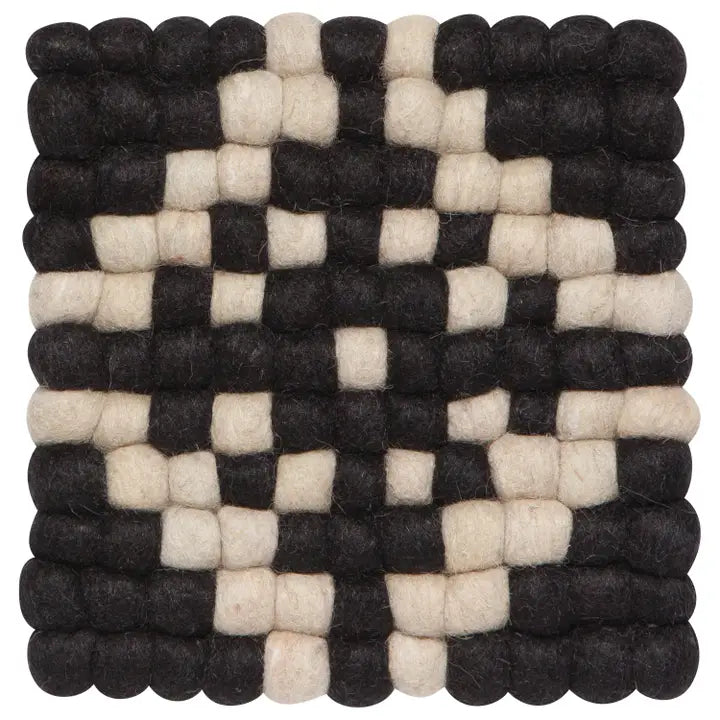 Regular price $13.99 Save $-13.99This cool felt trivet is comprised of tiny hand-felted balls stitched together in a pattern to form a square trivet. It’s perfect for setting a casserole or teapot on, for a potted plant, or just to decorate your table when you’re not using it. Each trivet is unique so patterns will vary slightly. Handmade in Nepal.