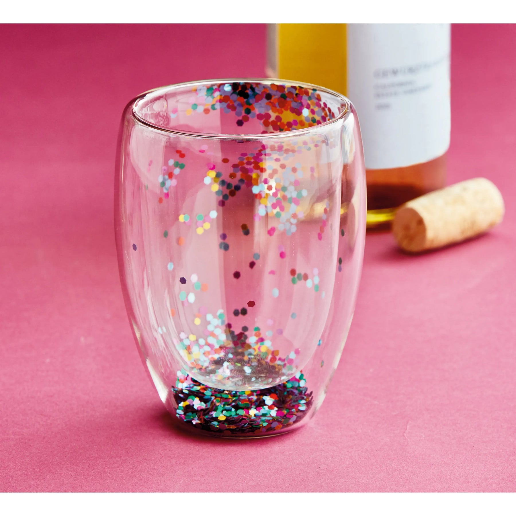 Regular price $16.99 Save $-16.99Make every occasion special with this double-walled stemless wine glass featuring shimmery glitter inside. Hand wash only, do not microwave. A festive addition to your celebrations.