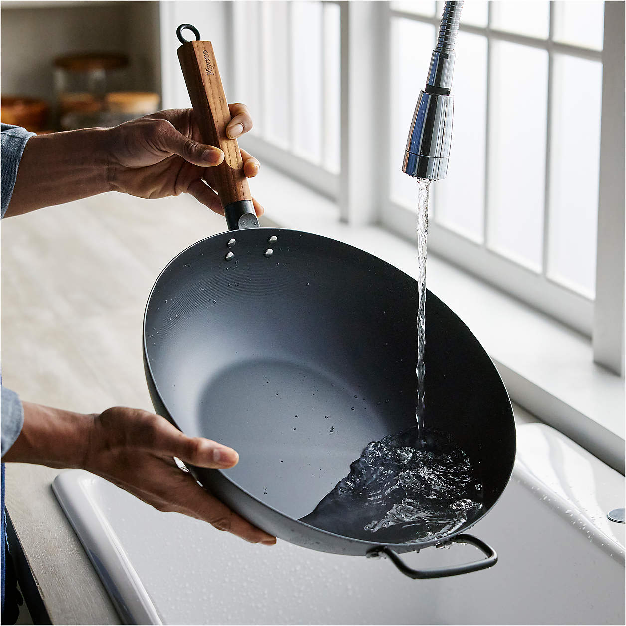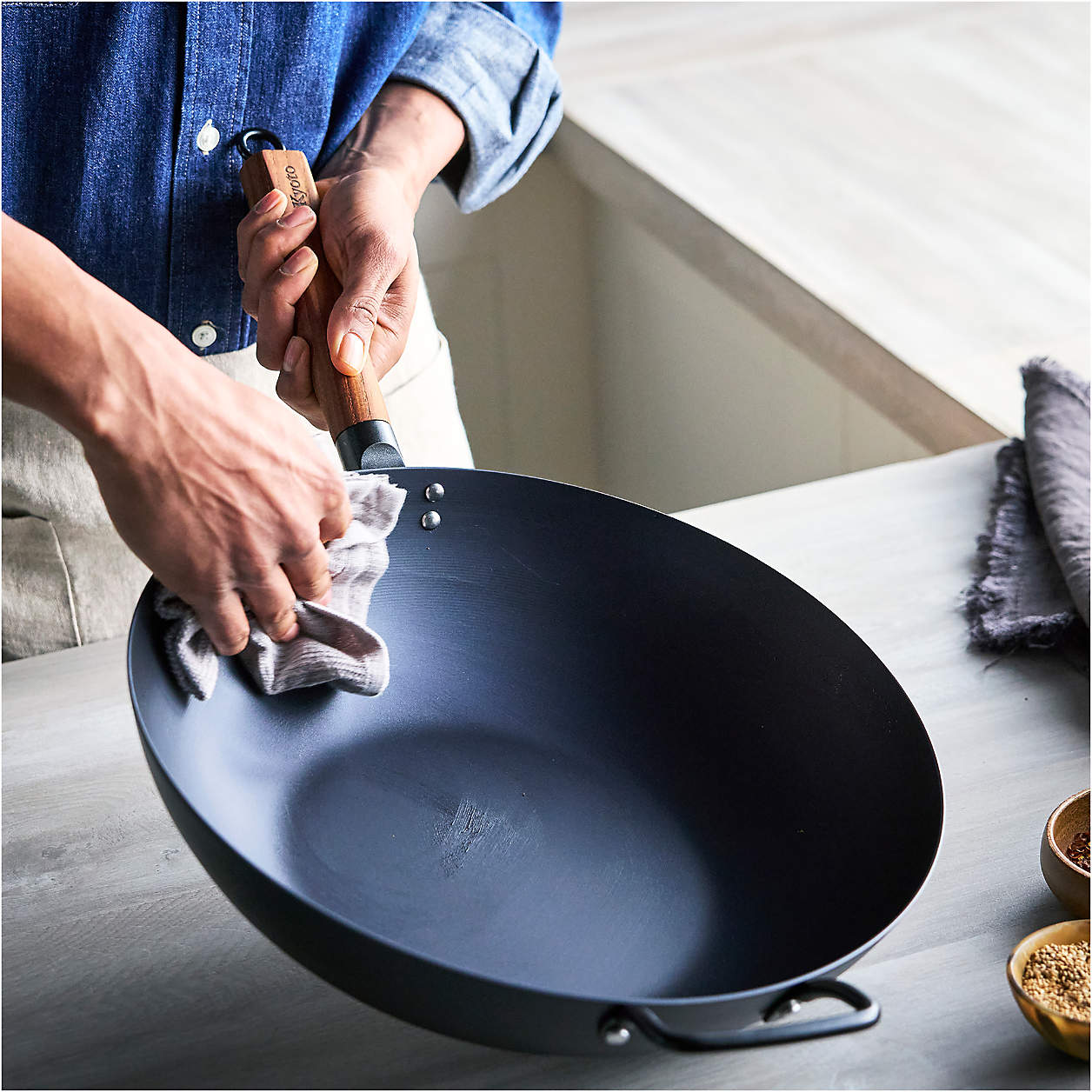 Regular price $69.99 Save $-69.99Stir-fry like a pro with a wok that's built to last. Made of carbon steel—a super-strong alloy of iron and carbon—the ultra-durable pan heats quickly and evenly. The preseasoned wok is ready to use and will develop a non-stick patina with every use. High walls corral ingredients as you toss and stir, while the long wooden handle and wide helper handle allow you to manipulate the pan on the stove with ease.